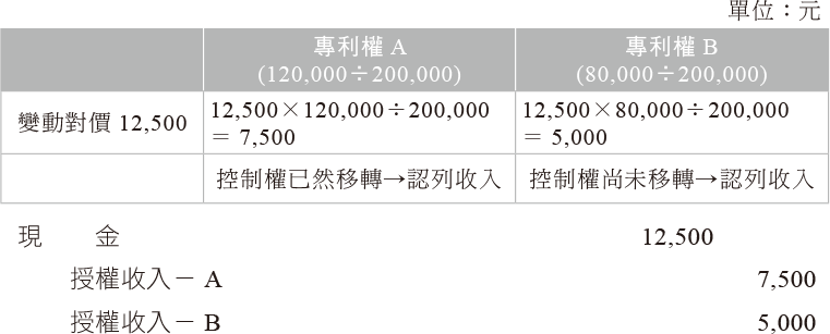 (2)專利權A授權與專利權B授權之單獨售價分別為$120,000、$80,000。【107年會計師考試】