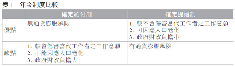 所謂「確定給付制」, 以公務人員退休金為例,為政府承諾公務人員於退休時,按約定退休辦法支付定額或分期支付退休金,退休金多寡取決於薪資水準與服務年資;而「隨收隨付制」則是將退休年金的支出經費由當代的工作者負擔,支付給退休者退休金,這是透過世代之間的移轉功能,將未來的財務負擔責任轉嫁給年輕世代承擔。